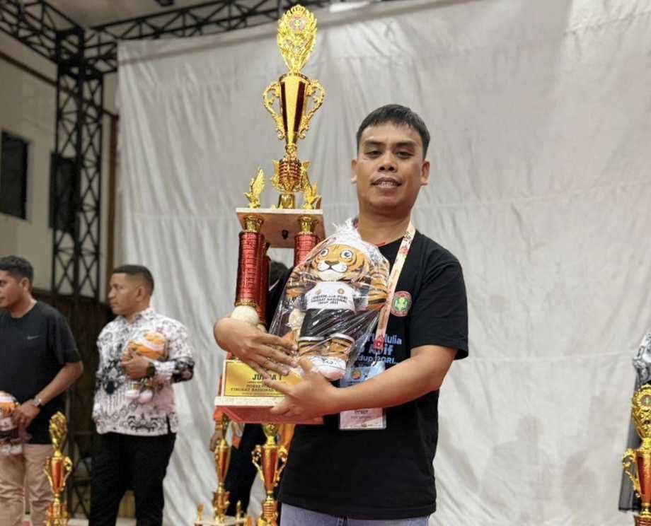 GORONTALO — Prestasi membanggakan ditorehkan guru Kota Gorontalo di kancah nasional. Defri Andriano Dunggio, S.Pd., perwakilan PGRI Kota Gorontalo yang juga pendidik di SMP Negeri 16 Kota Gorontalo, berhasil meraih Juara 1 Nasional Vokalia Solo Putra pada ajang Pekan Olahraga Seni dan Pembelajaran (PORSENIJAR) tingkat nasional. Pencapaian ini menjadi sejarah baru sekaligus kebanggaan bagi dunia pendidikan Gorontalo.