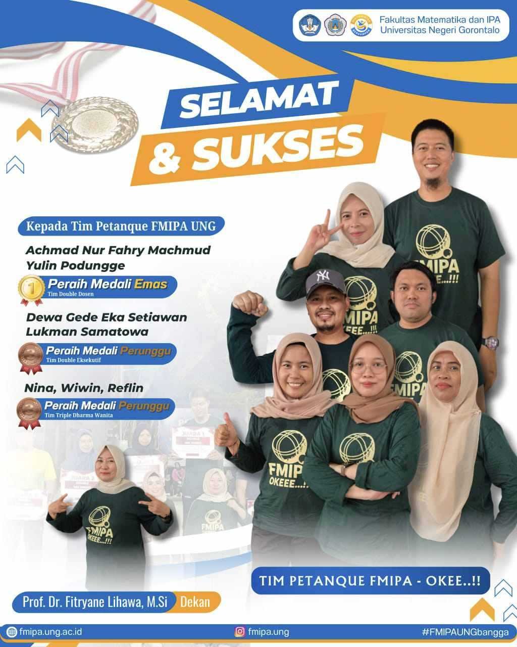 GORONTALO – Fakultas Matematika dan Ilmu Pengetahuan Alam (FMIPA) Universitas Negeri Gorontalo (UNG) kembali mencatatkan prestasi membanggakan dalam ajang Petanque Competition yang diselenggarakan oleh Dharma Wanita Persatuan (DWP) UNG.
