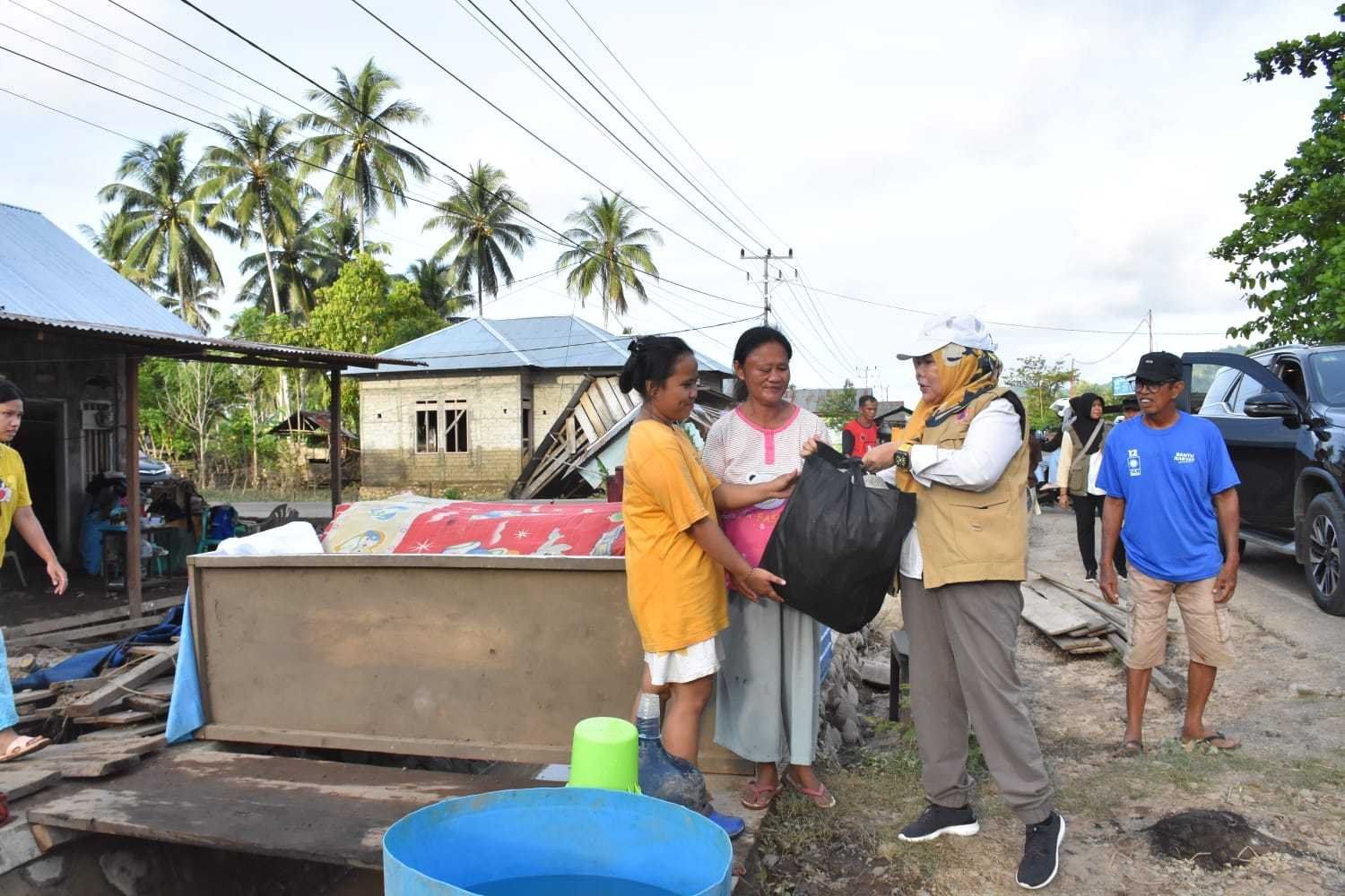 GORONTALO UTARA - Anggota DPR RI Komisi VIII, Idah Syahidah Rusli Habibie mengunjungi para korban banjir yang ada di Kecamatan Tolinggula, Kabupaten Gorontalo Utara, Selasa (09/04/2024).