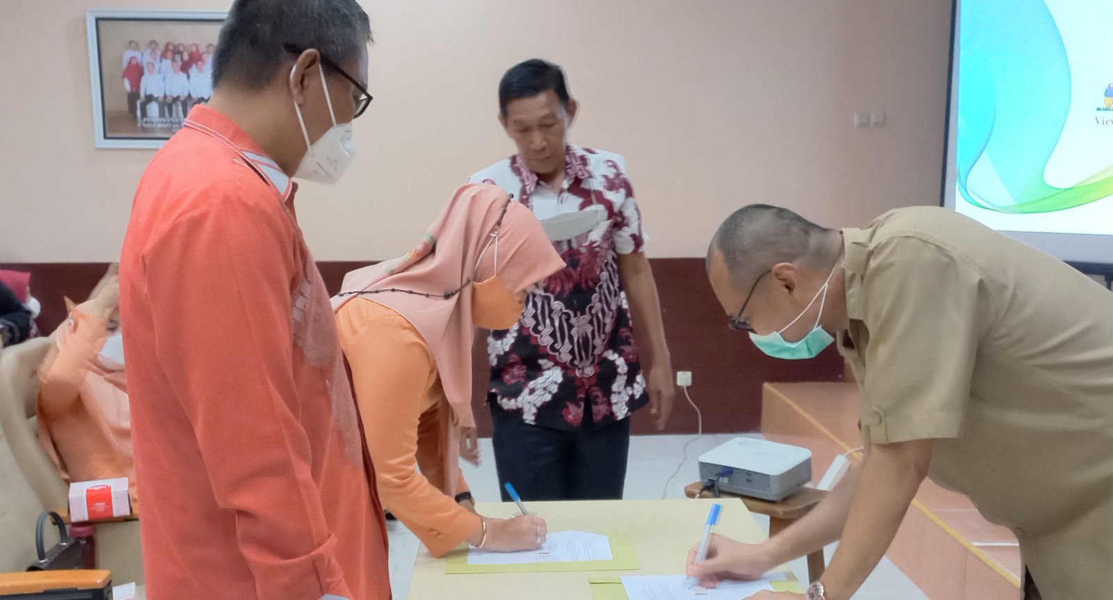Dikesempatan yang sama Dharmawanita Persatuan Fakultas Ekonomi, melakukan kerjasama dengan Dinas Kesehatan Kota Gorontalo. Kerjasama tersebut dalam rangka mendukung pelayanan kesehatan, khususnya vaksinasi yang ada dilingkungan Fakultas Ekonomi. (IP-03/Vik)