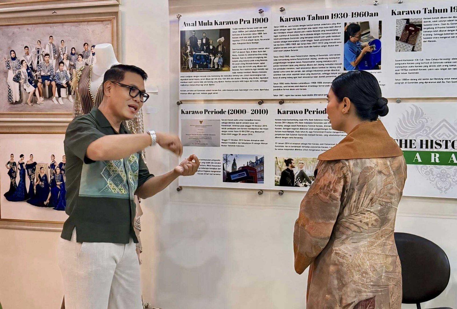 Wamen Ni Luh Puspa kemudian diajak berkeliling melihat proses dan sejarah seni sulam Karawo serta Museum Karawo di lantai dua. Ia mendengarkan kisah perjalanan Agus Lahinta selama 11 tahun membangun Rumah Karawo dan tak ketinggalan berbelanja koleksi Karawo eksklusif.